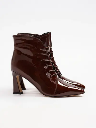 Ботильоны черного цвета со шнуровкой на высоком каблуке