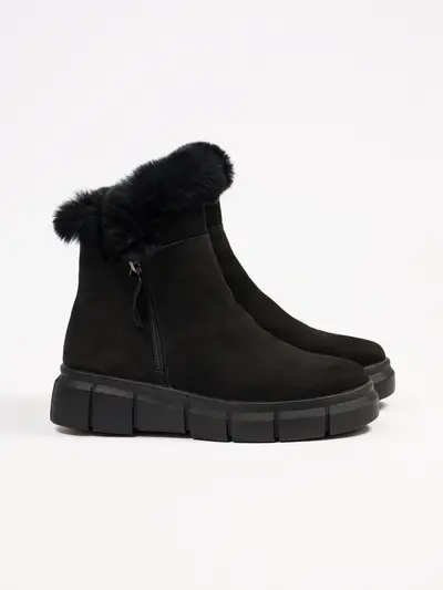 Ботинки серого цвета с оторочкой мехом на средней платформе