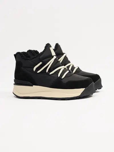 Ботинки комбинированные бежевого цвета на контрастной средней подошве