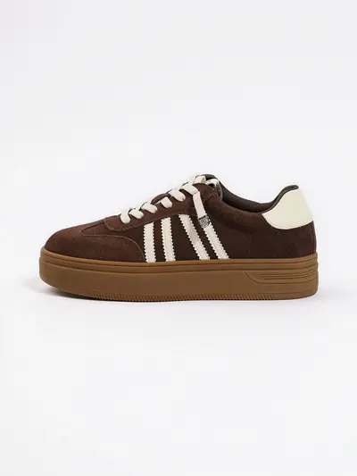 Кеды коричневого цвета из натуральной замши на средней платформе