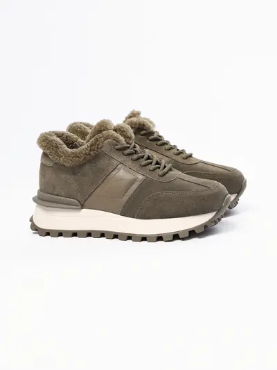 Кроссовки комбинированные черного цвета на рельефной подошве