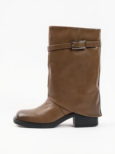 Сапоги укороченные с отворотом черного цвета