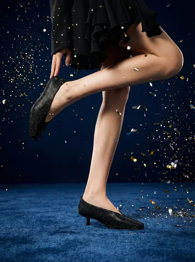 Туфли-лодочки черные с люрексом