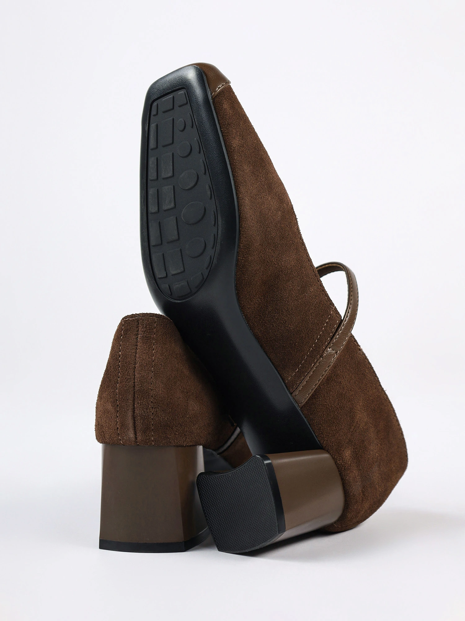 Туфли мэри-джейн коричневого цвета с отрезным носком
