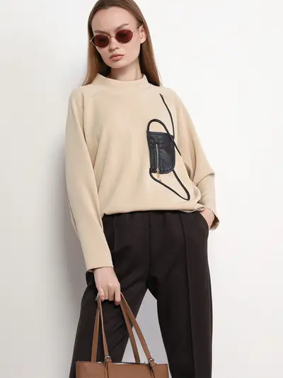 Джемпер цвета хаки с декоративной контрастной отделкой