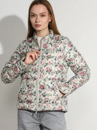 Куртка желтого цвета с цветочным принтом с горизонтальной стежкой