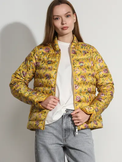 Куртка молочного цвета с цветочным принтом с горизонтальной стежкой