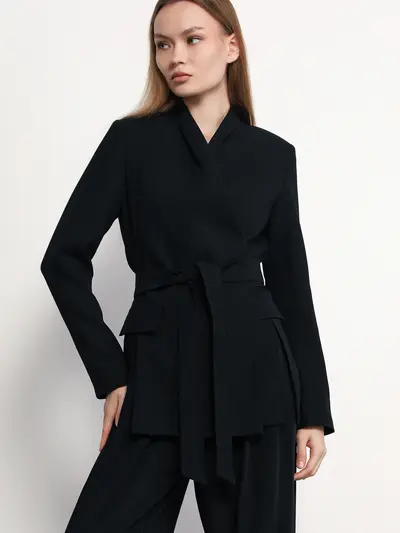 Жакет темно-коричневого цвета прямого кроя с имитацией карманов