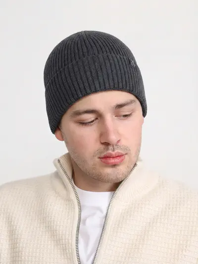 Шапка-бини зеленого цвета с отворотом из хлопка
