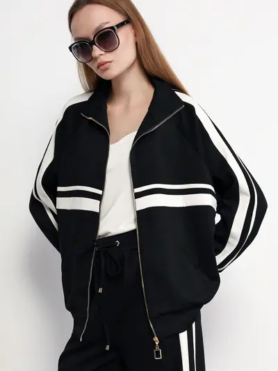 Куртка трикотажная темно-коричневого цвета прямого кроя