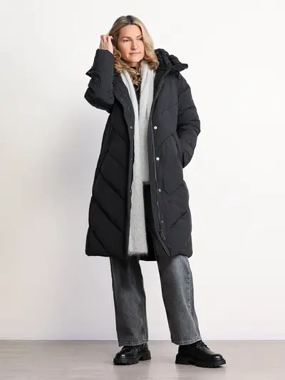 Пальто темно-синего цвета стеганое с утеплителем DuPont SORONA