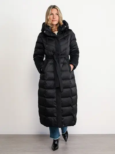 Пуховик стеганый на натуральном пуху с двойным капюшоном